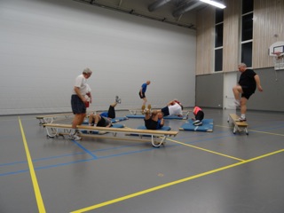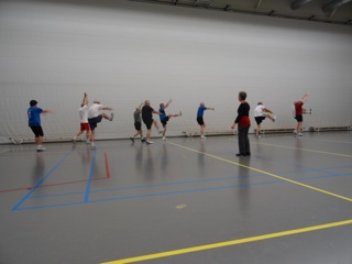 Op dinsdagavond komt de groep voor conditietraining van de Budo enthousiast bij elkaar in de Magneet. ![]() Een bont gezelschap werkt in eigen tempo aan de verbetering van conditie en spieren onder begeleiding van onze zeer gedreven trainster Yvonne Verhage. Er wordt begonnen met een gezamenlijke warming-up waarna er meestal een oefeningenparcour wordt opgebouwd. ![]() Onder begeleiding van muziek worden er series oefeningen gedaan waarbij elke spiergroep aan bod komt. Iedereen doet dit in zijn eigen tempo en naar eigen mogelijkheden. Er wordt weer afgesloten met een cooling-down en het afbreken van het parcours. Na een uurtje zweten en gezelligheid keert een ieder weer tevreden huiswaarts.